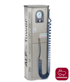 Calibratable electronic tire inflator as a built-in unit for wall mounting